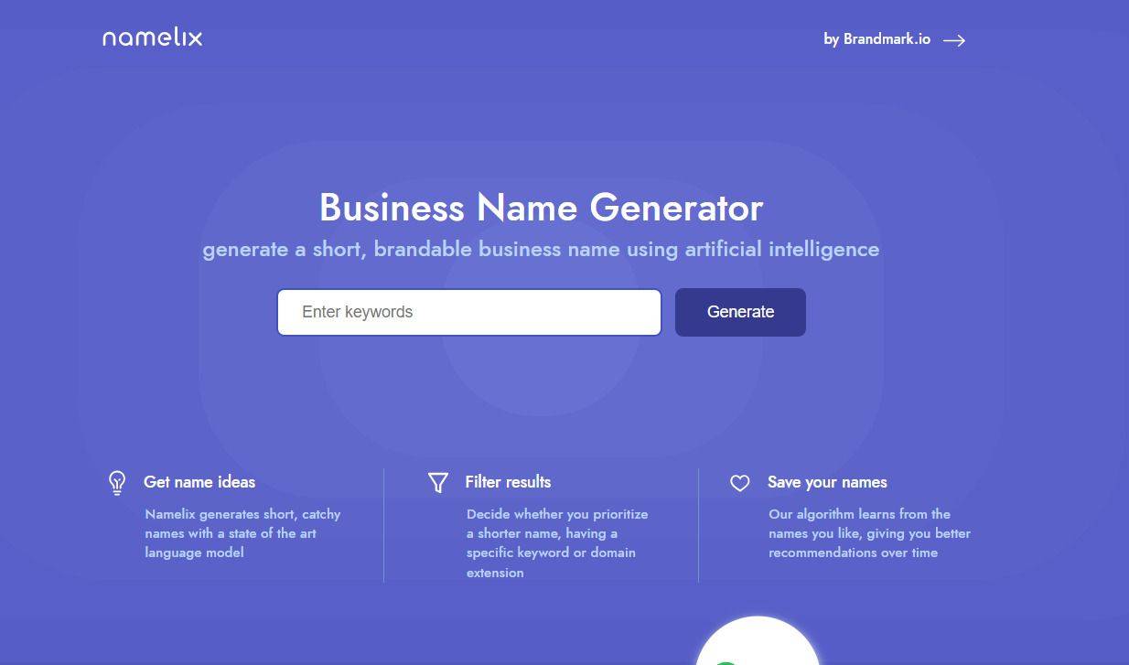 Namelix操纵生成性AI手艺建立简短、有品牌力的企业名称,除了PC端,从而指导ChatGPT生成合适需求的名称。